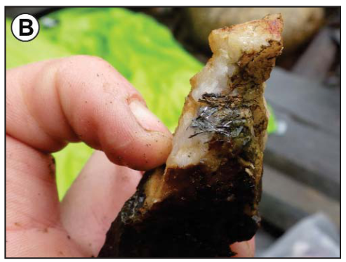 Figure 6: Plate 7B (p. 100) of Updated Geology of the St. Alban’s Map Area (NTS 1M/13) (Westhues, 2017) illustrates coarse stibnite hosted within quartz veins at the Pardy Head occurrence.